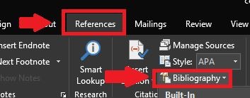 • Masuk ke menu “References” kemudian cari pilihan “Bibliography”.
