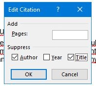 • Lalu, pilih “Edit Citation” dan centang pada pilihan “Author” dan “Title” dan klik tombol “OK”.