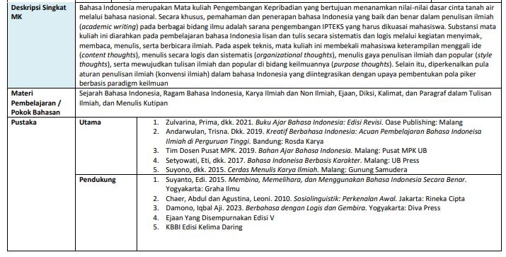 RPS yang disusun tidak hanya berisi beberapa poin unsur matrik. Sekaligus tidak hanya terdiri dari satu halaman saja. Melainkan sampai beberapa halaman dan memuat banyak sekali unsur.